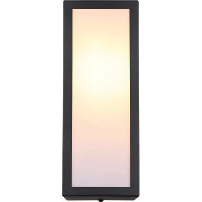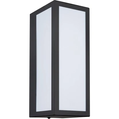 Diese moderne Außenleuchte überzeugt durch tolles schlichtes Design aus Glas und Metall. Diese Leuchte in Schwarz besteht aus einem rechteckigen Metallkäfig (12×32 cm) und einer schönen opalen Glaswand an jeder Seite. Die E27 Fassung ermöglicht Ihnen Lichtfarbe und Helligkeit bis zu einer maximalen Leitung von 60 Watt, selbst zu bestimmen. Der Schutzgrad IP44 gegen Spritzwasser sorgt für ein sorgenfreies Anbringen der Leuchte im Außenbereich.