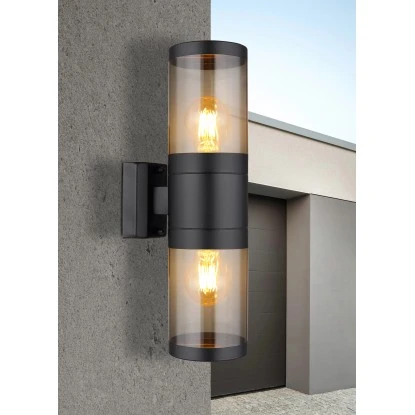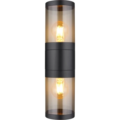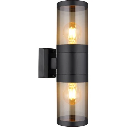 Globo Außenleuchte 2-flammig Schwarz Matt Rauchfarben 102 X 380 Mm