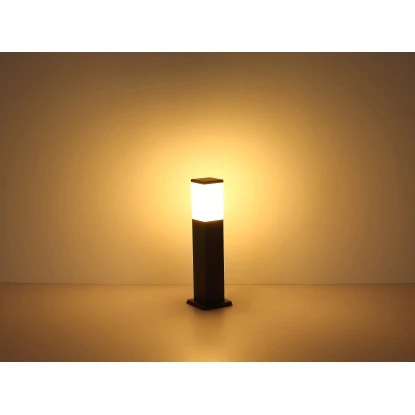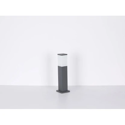 Die Globo Außenlampe Herri überzeugt durch Ihr stilvolles Design aus anthrazitfarbenem Edelstahl. Die 33 cm große Außenleuchte besteht aus einem Edelstahlquader, der mit opalen Kunststoff versehen ist. Der Edelstahlquader bedeckt die E27-Fassung der Leuchte, welche Sie mit einem passenden LED-Leuchtmittel bestücken können. Dadurch haben Sie die Möglichkeit, Lichtfarbe und Helligkeit nach Ihren Vorstellungen zu bestimmen. Mit der Leuchte können Sie Ihre Außenbereiche stilvoll ergänzen.