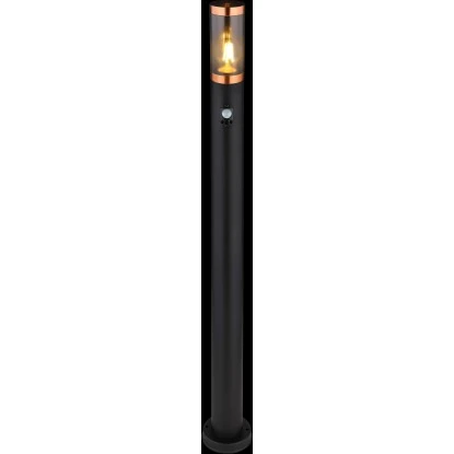 Diese elegante Sockellampe der Serie Boston zeichnet sich durch ihr stilvolles Design und die tolle Verarbeitung aus. Die formschöne Außenlampe ist aufgrund ihrer Schutzart IP44 bestens für den Außenbereich geeignet. Dieses Modell ist aus schwarzem Edelstahl und opalem Kunststoff gefertigt und hat eine Gesamtgröße von 110 cm. Die Lampe ist mit einer E27 Fassung ausgestattet und ermöglicht Ihnen ein Leuchtmittel (max. 15W) Ihrer Wahl zu nutzen. Aufgrund ihrer Stromersparnis und Langlebigkeit empfehlen wir LED-Lampen. Ein zusätzlicher Pluspunkt ist der integrierte Bewegungsmelder (90°) mit einer Reichweite von bis zu 9 Meter. Mit weiteren Sockellampen und Wandlampen der gleichen Produktserie kann man das Bild komplettieren.