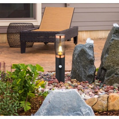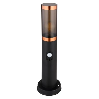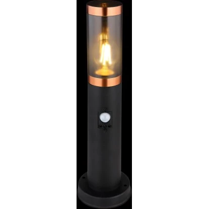 Diese elegante Sockellampe der Serie Boston zeichnet sich durch ihr stilvolles Design und die tolle Verarbeitung aus. Die formschöne Außenlampe ist aufgrund ihrer Schutzart IP44 bestens für den Außenbereich geeignet. Dieses Modell ist aus schwarzem Edelstahl und opalem Kunststoff gefertigt und hat eine Gesamtgröße von 45 cm. Die Lampe ist mit einer E27 Fassung ausgestattet und ermöglicht Ihnen ein Leuchtmittel (max. 15W) Ihrer Wahl zu nutzen. Aufgrund ihrer Stromersparnis und Langlebigkeit empfehlen wir LED-Lampen. Ein zusätzlicher Pluspunkt ist der integrierte Bewegungsmelder (90°) mit einer Reichweite von bis zu 9 Meter. Mit weiteren Sockellampen und Wandlampen der gleichen Produktserie kann man das Bild komplettieren.