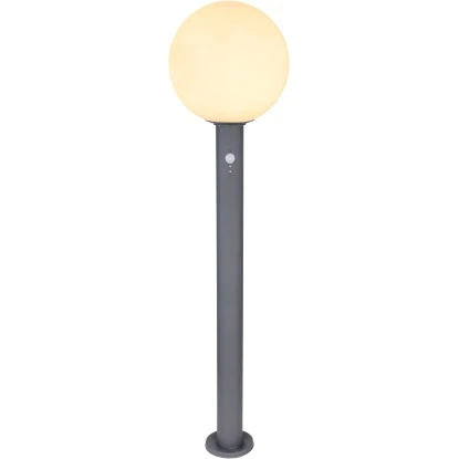 Die Außenlampe Ossy von Globo ist eine wundervolle Ergänzung für Ihre Terrasse oder Ihren Garten. Die 100 cm große Außenleuchte besteht aus einem Zylinder aus anthrazitfarbenen Aluminiumdruckguss mit integrierten Bewegungsmelder. Zudem verfügt sie über eine opale Glaskugel, die Sie mit einem E27-LED-Leuchtmittel Ihrer Wahl bestücken können. Dadurch haben Sie die Möglichkeit, Lichtfarbe und Helligkeit individuell zu bestimmen. Durch weitere Artikel der gleichen Serie können Sie in Ihrem Außenbereich stilvolle Akzente setzen und das Gesamtbild komplettieren.
