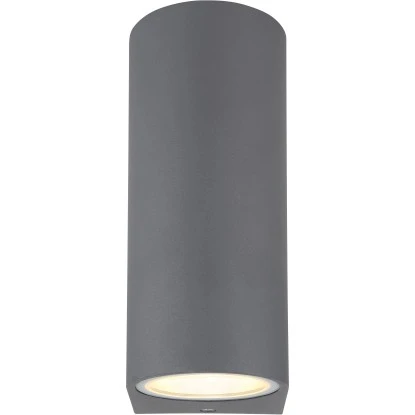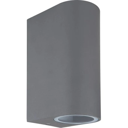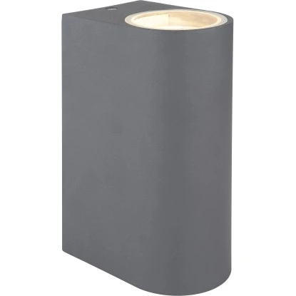 Die moderne Außenwandlampe aus der Veronika-Serie von Globo überzeugt durch ihr schlichtes Design aus anthrazitfarbenem Aluminiumdruckguss. Die 15 cm große Leuchte besteht aus einer abgerundeten Aluminiumform, welche an der Ober- und Unterseite mit jeweils einem GU10-Leuchtmittel Ihrer Wahl bestückt werden kann, die dann von klarem Glase bedeckt werden. Dadurch sind Sie in der Lage, Lichtfarbe und Helligkeit individuell zu bestimmen. Durch weitere Artikel der gleichen Serie können Sie Ihren Außenbereich stilvoll in Szene setzen und das Gesamtbild komplettieren.