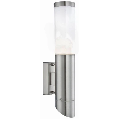 Besonders schön wirkt die Leuchte neben der Eingangstür, kann aber problemlos auch an einem Gartenzaun angebracht werden. Die Leuchte aus Edelstahl ist mit einem Opalglas ausgestattet. Die Leuchte ist gegen kleine Fremdkörper und Spritzwasser aus allen Richtungen geschützt (IP 44).
