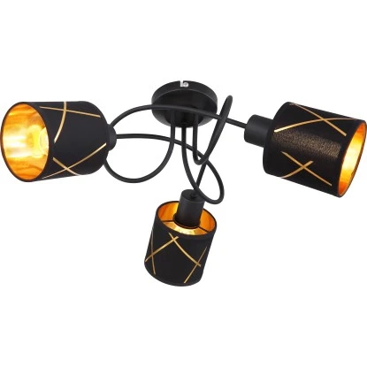 Die geschmackvolle Deckenleuchte Bemmo von Globo überzeugt mit den eleganten, schwarz- goldfarbenen Textilschirmen. Das Licht dieser wunderschönen Stehlampe reflektiert durch das an der Innenseite des Lampenschirms angebrachte goldfarbige Acryl wunderbar. Durch die freie Wahl der Leuchtmittel bis max. 25 W entscheiden Sie in welcher Lichtfarbe Ihr Heim erstrahlt.
