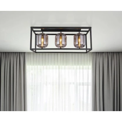 Diese moderne Deckenleuchte der Serie Blacky überzeugt durch tolles Design. An einem rechteckigen Metallkäfig (77 x 25 cm) in Schwarz matt befinden sich 3 E14 Fassungen, welche jeweils von einem formschönen Glasschirm in Rauchfarben bedeckt sind. Die E14 Fassungen ermöglichen Ihnen bis zu einer maximalen Leistung von 40 Watt, selbst über Lichtfarbe und Helligkeit zu bestimmen. Aufgrund von Langlebigkeit und Stromersparnis empfehlen wir LED Leuchtmittel.