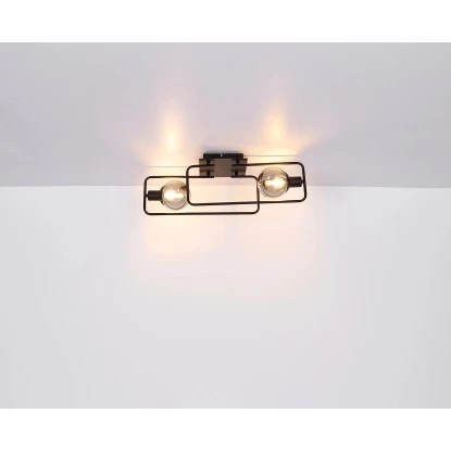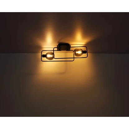 Diese moderne Deckenleuchte begeistert durch schlichtes Design. An zwei rechteckig abgerundeten Metallstäben (61×23 cm) in matt Schwarz befindet sich jeweils eine E14 Fassung, bestückt mit einem rauchigen Glasschirm. Die E14 Fassungen ermöglichen Ihnen, bis zu einer maximalen Leistung von 40 Watt, selbst über Lichtfarbe und Helligkeit zu bestimmen.