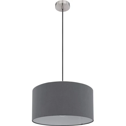Die runde Hängelampe aus der Sanna-Serie von Globo mit einem Durchmesser von 40 cm eignet sich wunderbar für ihre Innenräume. Der 140 cm weit von der Decke hängende, anthrazitfarbene Textilschirm umfasst die E27-Fassung, die Sie mit einem passenden Leuchtmittel Ihrer Wahl bestücken können. Dadurch sind Sie in der Lage, Lichtfarbe und Helligkeit individuell zu bestimmen. Durch weitere Modelle der gleichen Serie können Sie das Gesamtbild in Ihren vier Wänden komplettieren und für ein stilvolles Ambiente sorgen.