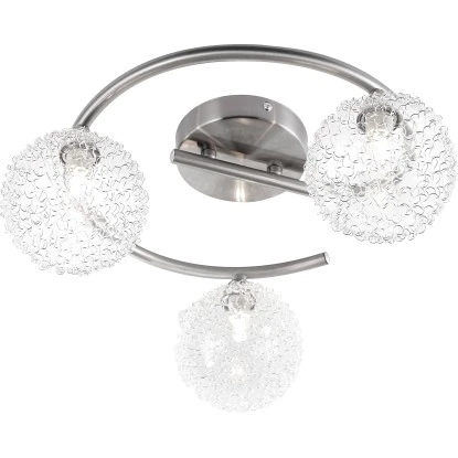 Das Halogen 3er-Rondel besteht aus Nickel mit drei Kugeln aus Alu-Geflecht. Drei Halogenleuchtmittel G9 mit 33 Watt sind im Lieferumfang enthalten.