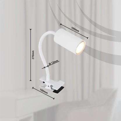 Der kleine klassische Klemmstrahler Robby ist hergestellt aus weißem Kunststoff und Metall. Er verfügt über einen Schalter, welcher das Ein- und Ausschalten der Lampe ermöglicht und ist zudem auch beweglich (flexo). Die GU10 Fassung überlässt Ihnen die Wahl des Leuchtmittels (max.25W) und somit auch die Lichtstärke und Lichtfarbe. Aufgrund ihrer Langlebigkeit und Stromersparnis empfehlen wir LED-Lampen.