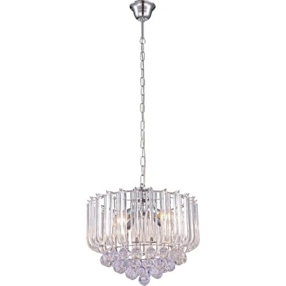 Mit einem Durchmesser von 35 cm und einer Länge von 90 cm ragt dieser stilvolle Lüster der Serie Minnesota in den Raum. Gefertigt aus Chrom ist diese Lampe mit klaren Acrylkristallen und klarem Acryl bestückt. Ausgestattet mit vier E14 Fassungen (max. 40 W) ermöglicht Ihnen dieses Modell die freie Leuchtmittelwahl. Aufgrund ihrer Stromersparnis und Langlebigkeit empfehlen wir Ihnen LED-Lampen.
