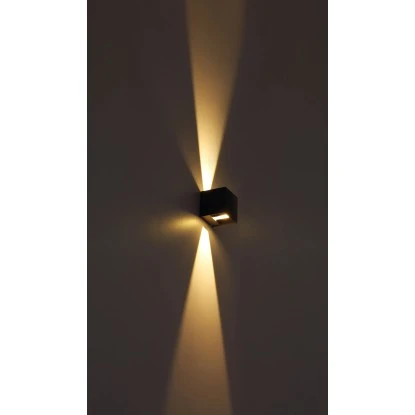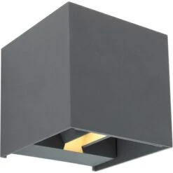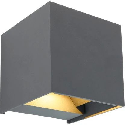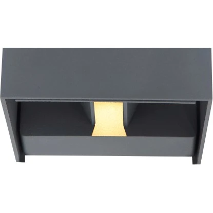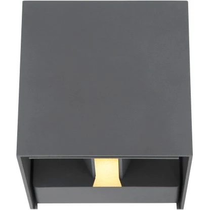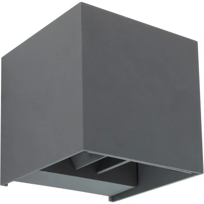 Die moderne Außenwandlampe aus der Veronika-Serie von Globo überzeugt durch ihr schlichtes Design aus anthrazitfarbenem Aluminiumdruckguss. Die cm große Außenleuchte besteht aus einem Aluminiumquader (10×10 cm), aus dem die inkludierten LED-Leuchtmittel an der Ober- und Unterseite 315 Lumen starkes Licht bei einer angenehmen Lichtfarbe von 3000 Kelvin spenden. Durch mehrere Artikel der gleichen Serie können Sie Ihren Außenbereich für ein gemütliches Ambiente sorgen und das Gesamtbild komplettieren.