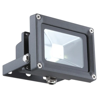 Der Strahler ist aus Aluminium-Druckguss gefertigt und ist mit einem klaren Glaschirm ausgestattet. Der Strahler wird inklusive 1 x 10 W leistungsstarken und energieeffizienten LEDs geliefert. Die LEDs zeichnen sich besonders durch eine lange Lebensdauer von 20.000 h aus und strahlen in Tageslichtweiß mit einer Lichtfarbe von 6.500 K. Der Strahler ist staubdicht und gegen Strahlwasser aus allen Richtungen geschützt (IP 65).