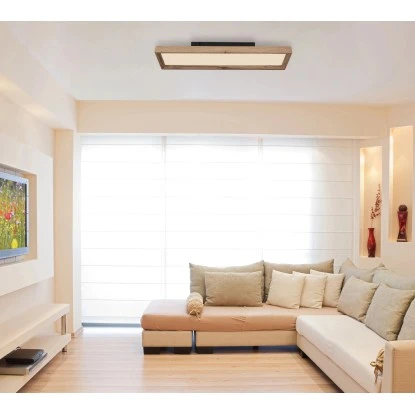 Diese rechteckige Deckenleuchte (61×16 cm) in Holzoptik der Serie Cinderella begeistert durch ihr tolles Design.