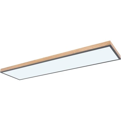 Diese Deckenlampe aus der Doro-Serie ist eine wunderschöne Ergänzung für Ihre Innenräume. Sie besteht aus einem rechteckigen MDF-Rahmen in Holzoptik (120×30 cm), welcher mit graphitfarbenem Aluminium versehen ist. Die Deckenleuchte verfügt über inkludierte LED-Leuchtmittel, welche von opalenem Acryl bedeckt werden. Diese leisten 2250 Lumen starkes Licht.