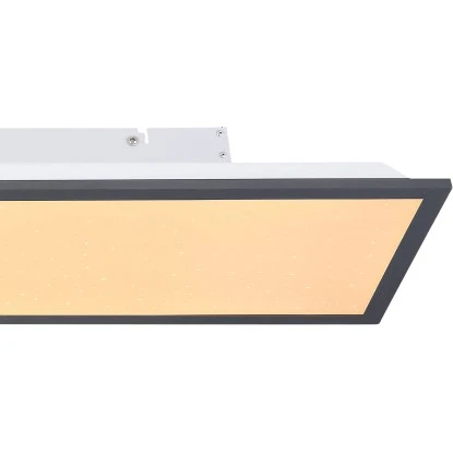 Diese rechteckige Deckenlampe aus der Doro-Serie (80 cm x 20 cm) ist eine stilvolle Ergänzung für Ihre Innenräume. Sie besteht aus einem graphitfarbenen Rahmen, der das opalene Acryl mit wunderschöner Sparkle Dekor, umschließt. Zudem leisten die inkludierten LEDs 1500 Lumen starkes Licht bei einer angenehmen Lichtfarbe von 3000 K (Warmweiß). Durch mehrere Artikel der gleichen Serie können Sie das Gesamtbild in Ihren vier Wänden komplettieren.