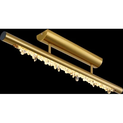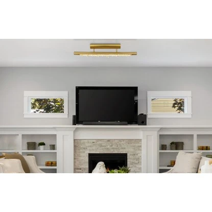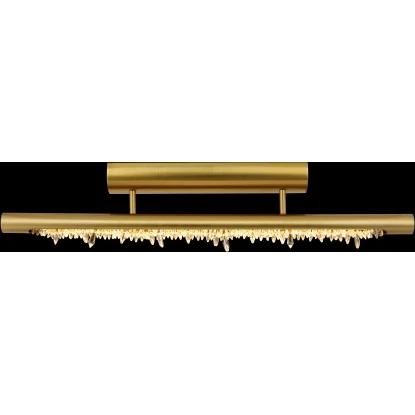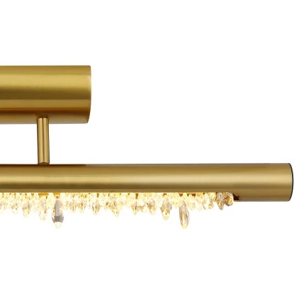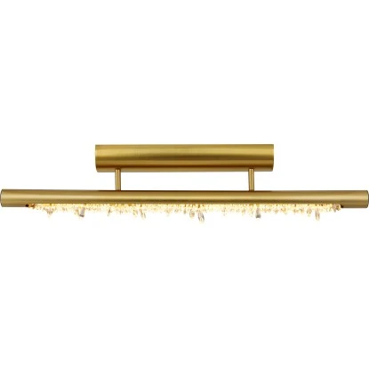Diese Deckenlampe aus der Felicitas-Serie (80×8 cm) besticht durch ihr simples Design aus messingfarbenem Metall. Sie besteht aus einem Metallstab, der an der Unterseite mit wunderschönen Acrylkristallen versehen ist. Diese bedecken die inkludierten LED-Leuchtmittel, welche 680 Lumen starkes Licht bei einer angenehmen Lichtfarbe von 3000 Kelvin (warmweiß) leisten. Durch weitere Artikel der gleichen Serie können Sie das Gesamtbild in Ihren Innenräumen komplettieren.