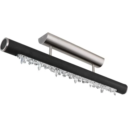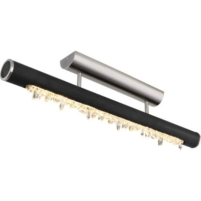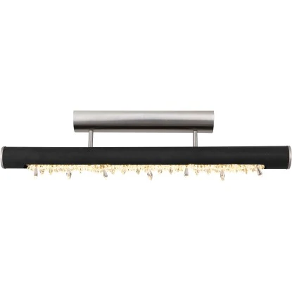 Mit dieser 80 cm langen Deckenlampe aus der Felicitas-Serie erweitern Sie Ihren Innenbereich um eine elegante Lichtquelle. Sie besteht aus einem schwarzen Holzstab, der an beiden Enden über nickel-matte Metallringe verfügt. An der Unterseite ist dieser mit wunderschönen Acrylkristallen versehen, welche die inkludierten LED-Leuchtmittel bedecken. Diese leisten 680 Lumen starkes Licht bei einer angenehmen Lichtfarbe von 3000 Kelvin (warmweiß). Durch weitere Artikel der gleichen Serie können Sie das Gesamtbild in Ihren Innenräumen komplettieren.