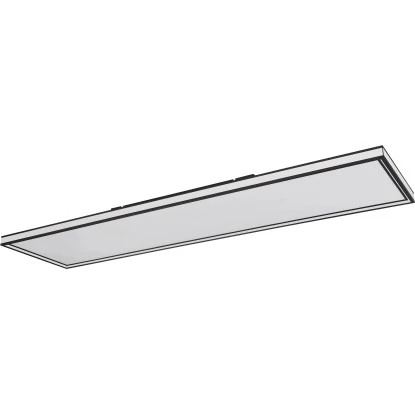 Diese moderne Deckenleuchte überzeugt durch ihr schönes Design. Sie besteht aus einem 120×30 cm großen Rahmen in der Farbe Schwarz mit Spiegelungen in Chrom.