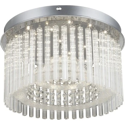 Diese auffällige runde Deckenlampe aus der Serie Joyce, zeichnet sich durch ihr stilvolles Design, sowie durch ihre hochwertige Verarbeitung aus. Diese Lampe besteht aus Chrom, Acryl, klaren K5 Kristallen sowie klaren Glasstäben die einen glamourösen Akzent setzen. Des Weiteren hat sie einen Durchmesser von 37 cm, ein 1600 Lumen starkes LED-Leuchtmittel , mit einer neutralweißen Lichtfarbe von 4000 Kelvin.
