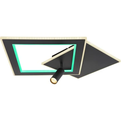Bestehend aus 2 quadratischen LED-Paneelen mit Rot, Grün und Blau Funktion und einer zylinderförmigen drehbaren GU10 Fassung scheint die Leuchte von 2700 Kelvin warmweißen bis zu 6500 Kelvin kaltweißem Licht. Mittels der mitgelieferten Fernbedienung und der Memory Funktion, können Sie die Leuchte dimmen und in mehreren Lichtstufen fixieren. Setzen Sie neue Akzente in Ihren Räumen.