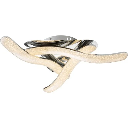 Diese 54 cm große Deckenlampe, aus der Serie Nabro, setzt einen glamourösen Akzent in kleineren Räumen. Die Basis dieser Lampe bildet edles Chrom und die geschwungenen Leuchtstäbe, gefertigt aus Chrom und Acryl werden durch funkelnde Acrylkristalle geschmückt. Die serienmäßige LED zu 36 Watt mit 2834 Lumen sorgt für die richtige Helligkeit, die Lichtfarbe von 3500 Kelvin wird als angenehmes Neutralweiß empfunden. Ebenfalls lässt sie sich sehr gut mit weiteren Produkten aus der gleichen Serie kombinieren.