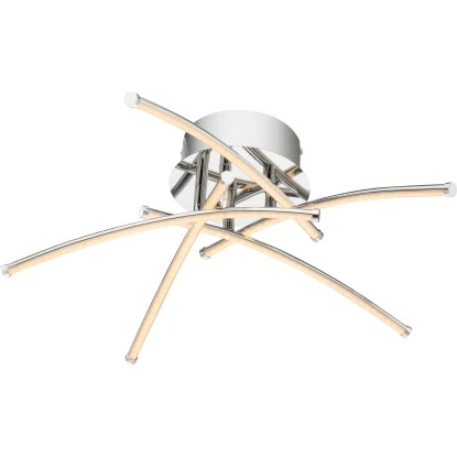 Wenn man von einem graphischen Design spricht, dann handelt es sich um die Deckenlampe aus der Serie Shanghai, die einen Durchmesser von 45 cm hat. Das Ausgangsmaterial dieser Lampe ist ein schönes Chrom und die drei gebogenen Leuchtarme wurden teilweise aus weißem Acryl gefertigt. Die serienmäßige 20W LED sorgt für die richtige Helligkeit, die Lichtfarbe von 3000 K wird als angenehmes Warmweiß empfunden und die Lichtstärke von 1035 lm wurde perfekt dazu abgestimmt. Des Weiteren sind noch andere Variationen dieser Serie erhältlich.