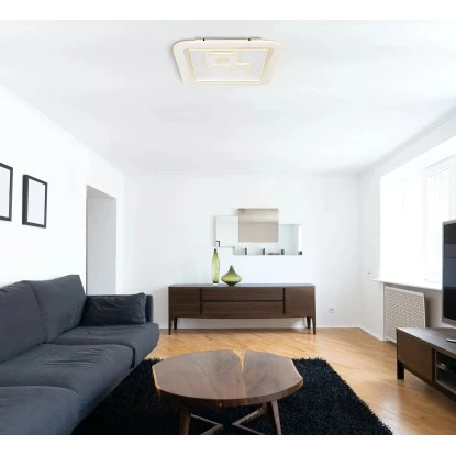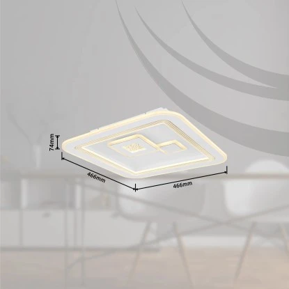 Diese äußerst moderne Deckenleuchte der Serie Valeria begeistert durch Ihr Aussehen. Diese quadratische Deckenleuchte (47×47 cm) besteht aus einem LED Panel mit zwei aufgesetzten weißen Rechtecken. Die Nachtlicht Funktion sorgt für ein angenehmes Licht und durch die Memory Funktion bleiben nach abschalten der Leuchte die Einstellungen erhalten. Mit Hilfe der inkludierten Fernbedienung können Sie die Lichtfarbe von 2700 Kelvin warmweiß , bis hin zu 6500 Kelvin kaltweiß fixieren und dimmen, dadurch schaffen Sie eine gemütlichere Wohnatmosphäre. Warmes Licht im Eingangsbereich oder helles Licht im Büro.
