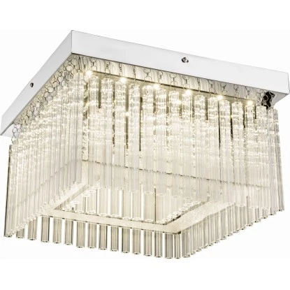 Diese auffällige quadratische Deckenlampe aus der Serie Vince, zeichnet sich durch ihr stilvolles Design, sowie durch ihre hochwertige Verarbeitung aus. Diese Lampe besteht aus Chrom und besitzt klare Glasstäbe sowie klare Glaskristalle die einen glamourösen Akzent setzen. Des Weiteren hat sie eine Größe von 36 cm, ein 1860 Lumen starkes LED-Leuchtmittel und strahlt in einer Lichtfarbe von 4000 Kelvin.