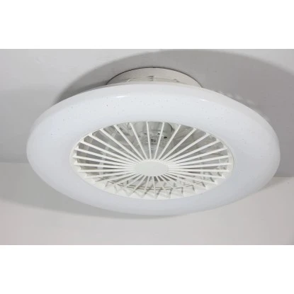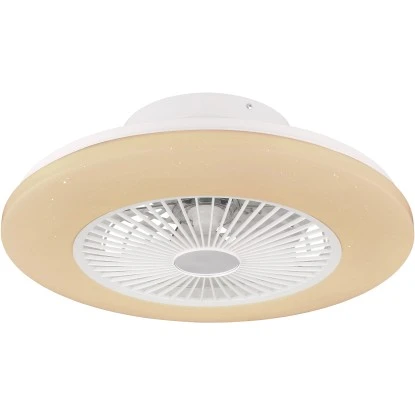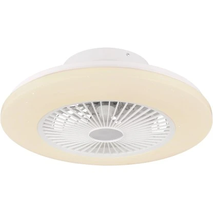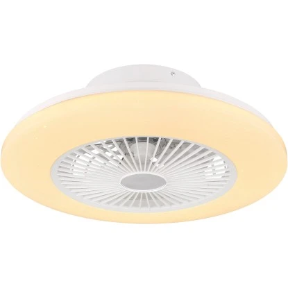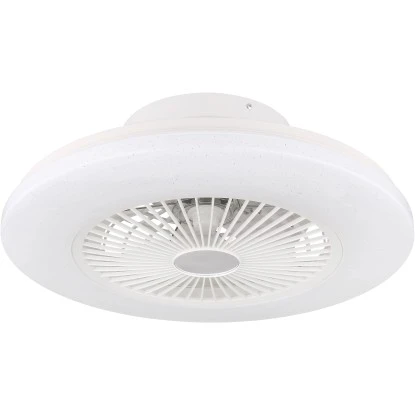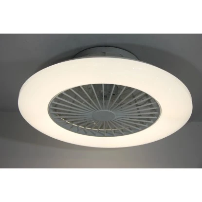 Dieser Deckenventilator der Serie Travo (Ø 50 cm) ist eine wunderbare Ergänzung für Ihre Innenräume. Aus weißem Metall gefertigt, verfügt er außerdem über einen opalenen Kunststoffring mit wunderschöner Sparkle Dekor. Dieser ist wiederum mit integrierten LED-Leuchtmitteln versehen, die 1200 Lumen starkes Licht spenden.