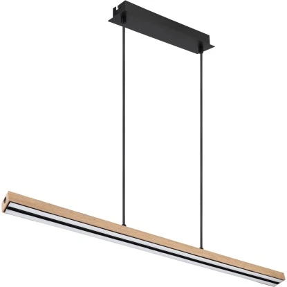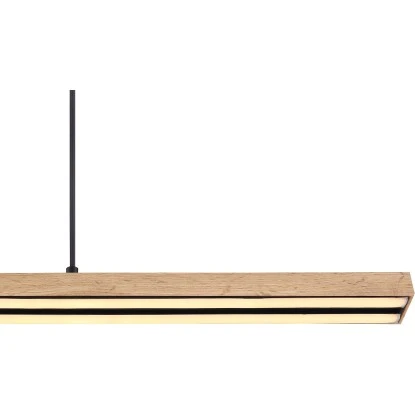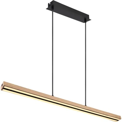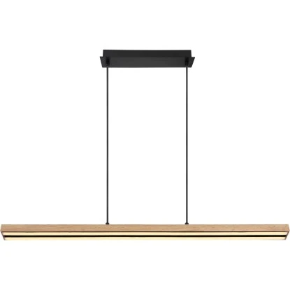 Diese moderne Deckenleuchte der Serie Doro überzeugt durch Ihr schlichtes Design. Sie besteht aus einem knapp 100 cm langen und 8,5 cm breiten LED Panel mit einem Rahmen in Eichenholzoptik welches an zwei schwarzen Kabeln 1,2m von der Decke hängt. Durch die Memory Funktion bleiben die zuletzt verwendeten Einstellungen erhalten. Setzen Sie Akzente.