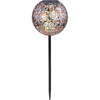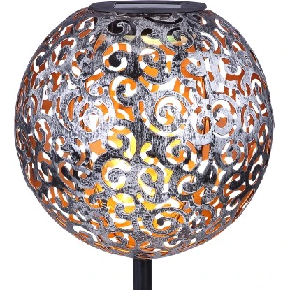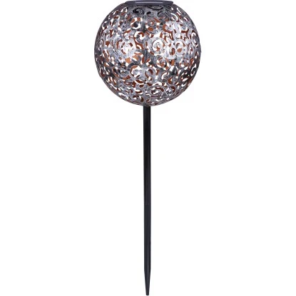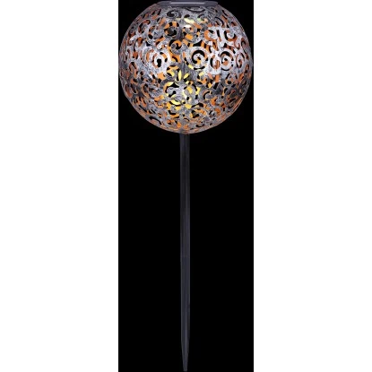 Diese silberfarbige Globo LED-Solaraußenleuchte Kugel mit Dekorgeflecht aus Metall 54 cm x 18,5 cm x 18,5 cm bereichert ihren Garten durch ihr antikes Design. Befestigt wird diese Solaraußenleuchte mittels Erdspieß. Den Höhepunkt bildet die am obersten Punkt befestigte Kugel mit einem schönen Dekorgeflecht. Mit 3000 K warmweißen Licht wird der Außenbereich bis zu 8 Stunden erleuchtet. Mit dem Schutzgrad IP44 ist diese Solaraußenleuchte bestens für den Außenbereich geeignet.