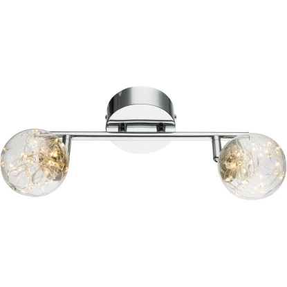 Die drei Spots sind von einem weißen Glas umschlossen und verfügen über drei E14 Fassungen. Die zwei LEDs mit je 3,5 Watt sorgen für ein 700 Lumen starkes Licht und die Lichtfarbe von 3000 K wird als angenehmes Warmweiß empfunden. Ein zusätzlicher Pluspunkt sind die lange Lebensdauer und die Energieeffizienz dieser Lampe.