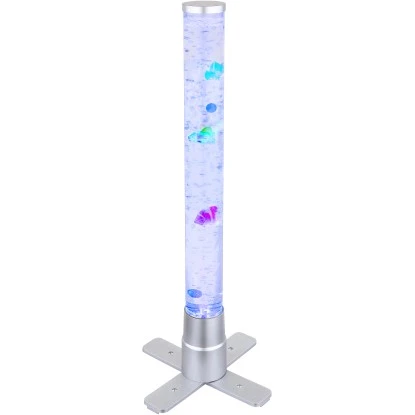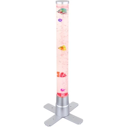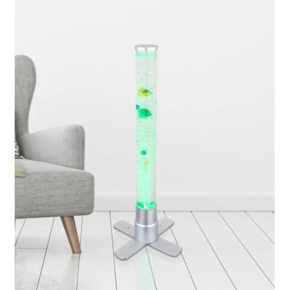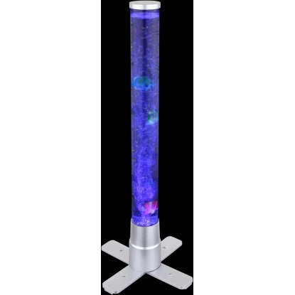 Diese tolle Stehleuchte der Serie Mendoza begeistert durch Ihr einzigartiges Design. Aus einem Standbein ragt ein zylinderförmiges Gefäß mit einer Höhe von 61 cm inklusive Dekorationsfische welche durch aufsteigende Luftblasen sich auf und ab bewegen. Durch ein RGB LED Leuchtmittel im Standfuß scheint das Wasser in unterschiedlichen Farben und sorgt für einen tollen Effekt.