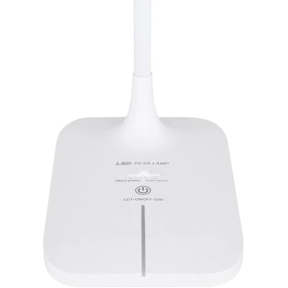 Die weiße Tischlampe aus Kunststoff mit opalfarbener Abdeckung hat einen rechteckigen Sockel und kann flexibel eingestellt werden. Über das mitgelieferte USB-Kabel wird der Akku geladen, damit die Lampe unabhängig von Steckdosen im Büro, Schlaf-, Kinder-, Wohn- oder Esszimmer mit bis zu 300 Lumen leuchten kann. Die Helligkeit kann über den Touchdimmer reguliert werden, auch die Lichtfarbe kann zwischen 3000 Kelvin (Warmweiß), 4000 Kelvin (Neutralweiß) oder 6000 Kelvin (Kaltweiß) eingestellt werden. Die 69 cm hohe, 12,8 cm breite und 43 cm lange Tischleuchte wird über einen Touchschalter ein- oder ausgeschalten und verbindet Funktionalität mit Design.