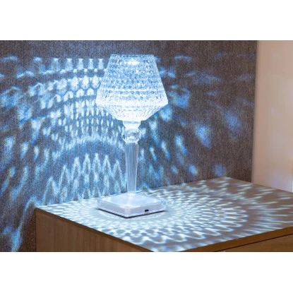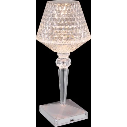 Die formschöne Globo Akku-Tischleuchte mit Kristalleffekt aus der Serie Gixi leistet ein 2700 Kelvin warmweißes, 4000 Kelvin neutrales und 6500 Kelvin kaltweißes Licht, welches mittels stufenlosen Touch Dimmer gedimmt und fixiert werden kann. Durch das inkludierte USB-Kabel können Sie die Leuchte einfach aufladen und mittels Touch ON/OFF bedienen.