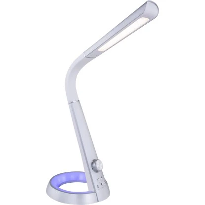 Die hochwertige Tischlampe ist mit einer 8 W LED ausgestattet, die sich dreistufig auf warmweißes (3.000 K), neutralweißes (4.300 K) und kaltweißes (6.300 K) Licht einstellen lässt. Im Fuß der Leuchte ist ebenfalls eine ringförmige 2 W LED RGB verbaut, bei der Sie verschiedene Farben einstellen können. Diese Funktion kann einwandfrei als Nachtlicht verwendet werden, da die Farben ein weniger grelles Licht abgeben.