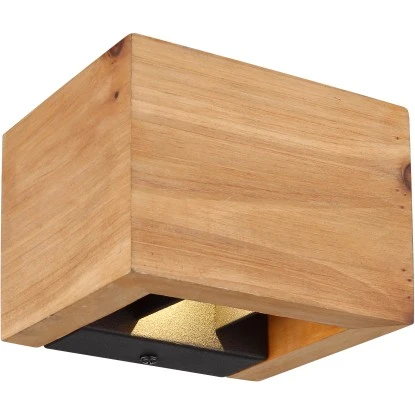 Sehr modern in Holzoptik begeistert diese Wandleuchte der Serie Alina. Der 9,5 cm große und 13,5 cm breite Holzwürfel mit einem Überhang von 11,5 cm besitzt ein integriertes Leuchtmittel im Inneren, welches ein angenehmes 3000 Kelvin warmweißes Licht ausstrahlt und somit für eine tolle Atmosphäre sorgt.