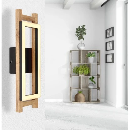 Diese moderne Wandleuchte begeistert durch Ihr fabelhaftes Aussehen. Sie besteht aus einem Holzgerüst mit einem Überhang von 7,5 cm in Form einer Leiter mit einer Höhe von 45 cm und zwei angebrachten rechteckigen LED Paneelen. Durch die Lichtstärke von 3000 Kelvin wird ein angenehmes warmweißes Licht erzeugt und sorgt für eine tolle Raumatmosphäre.
