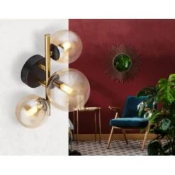 Diese faszinierende Wandleuchte der Serie Riha überzeugt durch tolles Design. An einem runden schwarz matten Sockel befindet sich eine 28 cm lange Metallstange in schönen Messing, bestückt mit drei unterschiedlich großen G9 LED Leuchtmitteln und jeweils einem Glasschirm in Amber. Die G9 LED Leuchtmittel geben ein 3000 Kelvin warmweißes Licht ab und erschaffen somit eine angenehme Atmosphäre. Durch weitere Modelle dieser Serie können Sie Ihren Wohnbereich perfekt ergänzen.