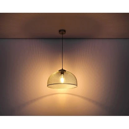 Mit ihrem ländlich-rustikalen Charme ist diese Globo Hängeleuchte ein absoluter Hingucker in Ihren vier Wänden. Durch Ihre Metall-Flechtung am Schirm (Ø 40 cm) ist sie geradezu wie geschaffen für solche Wohnstile. Mit einer Höhe von 1,2 m lässt sich die Leuchte gut in Ihr Zuhause integrieren. Das Metalldesign wirkt zusammen mit der rustikalen Metalloberfläche sehr industriell und lässt sich großartig mit entsprechenden Wohnstilen kombinieren.