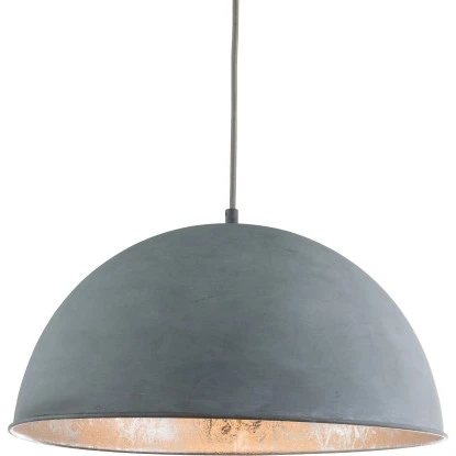 Die schöne Hängelampe Miram aus Metall in Zementoptik setzt angenehme Akzente in jedem Raum. Der Schirm der Lampe ist innen Silber metallic. Mit einer Länge von 1,2 m und einem Durchmesser von 41 cm ist diese Lampe der Hingucker in Ihren Räumen. Diese Pendellampe verfügt über eine E27 Fassung (max. 60 W), die es Ihnen ermöglicht ein Leuchtmittel Ihrer Wahl zu nutzen. Wir empfehlen Ihnen LED-Lampen aufgrund ihrer Stromersparnis und Langlebigkeit. Mit weiteren diversen Steh-, Wand- und Deckenlampen dieser Serie können Sie das Bild in Ihren Räumen komplettieren.