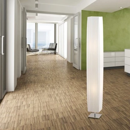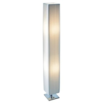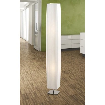 Die Standleuchte sorgt mit ihrem stabilen Fuß für eine gute Standfestigkeit auf ebenen Flächen. Die chromfarbene Stehleuchte mit Textilbespannung hat eine Höhe von ca. 119 cm und ist für 2 Leuchtmittel E27, 40 W geeignet.