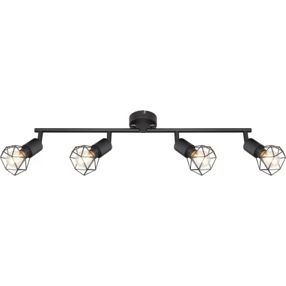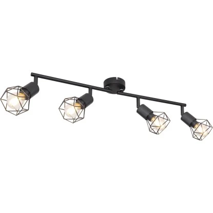 Der Deckenstrahler Xara I überzeugt mit seinem eleganten Design. Die vier beweglichen, an zwei starren Armen befestigten schwarzen diamantförmigen Metallkäfige, sollten alle Blicke auf sich ziehen. Die Spots dieses Strahlers sind mit jeweils einer E14-Fassung ausgestattet, die es Ihnen ermöglichen das für Sie passende Leuchtmittel (max. 40 W) selbst auszuwählen und damit Lichtfarbe und Lichtstärke zu bestimmen. Aufgrund ihrer Stromersparnis und Langlebigkeit empfehlen wir LED-Leuchtmittel. Mit weiteren Strahlern aus dieser Serie können Sie das Bild in Ihren vier Wänden komplettieren.