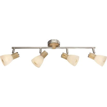 Der vierflammige Strahler der Deckenlampenserie Gylfi ist mit vier E14 Fassungen für je max. 40 W ausgestattet und ermöglicht Ihnen ein beliebiges Leuchtmittel zu nutzen. Aufgrund ihrer Stromersparnis und Langlebigkeit empfehlen wir LED-Lampen. Diese Material- bzw. Farbkombination aus Holz und nickelmatten Metall macht diesen Deckenstrahler zum Blickfang in Ihrem Wohnbereich. Die vier verstellbaren Spots, montiert auf zwei beweglichen Armen, bringen Licht in die dunkelsten Ecken. Mit Wandlampen und Deckenlampen der gleichen Modellserie können Sie das Bild in Ihrem Wohnbereich komplettieren.
