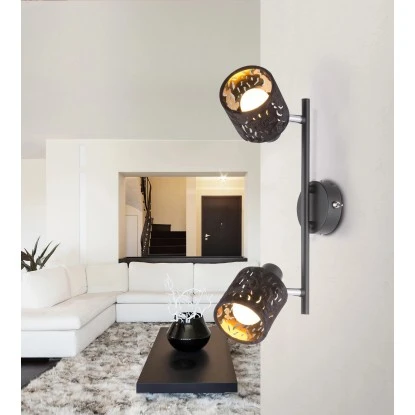 Globo Spot Troy 2-flammig Samt Schwarz-Gold