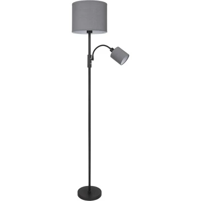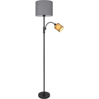 Elegant und wohnlich beschreibt sich die Stehleuchte. Der Textilschirm (Ø40 cm) in der Farbe Anthrazit ist nicht nur optisch ein Blickfang, sondern zaubert auch eine warme Atmosphäre. Dieser befindet sich auf einer E27 Fassung in ca. 1,6m Höhe. Wählen Sie die Leuchtmittel, bis zu einer maximalen Leistung von 40 Watt, ganz nach Ihrem Geschmack und genießen Sie die Abende bei einem angenehmen Fernsehlicht. Zusätzlich befindet sich ein kleiner Textilschirm in Anthrazit mit einer E27 Fassung auf einem flexo Gelenk. Dieser kann individuell verbogen und eingestellt als Leselicht verwendet werden.