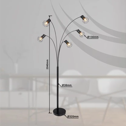 Globo Stehlampe Seymour 5-flammig Schwarz 1300 X 1200 X 2000 Mm
