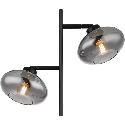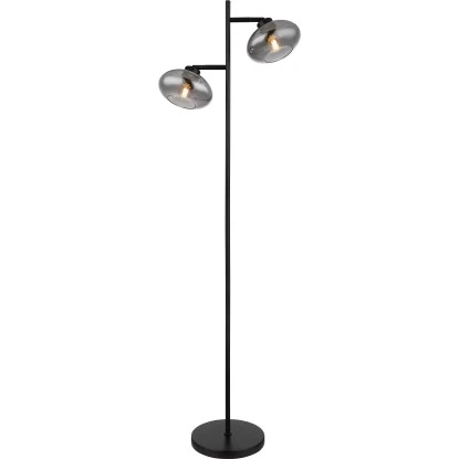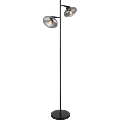 Globo Stehlampe Shaun 2-flammig Schwarz Matt-Rauchfarben 480 X 250 X 1500 Mm