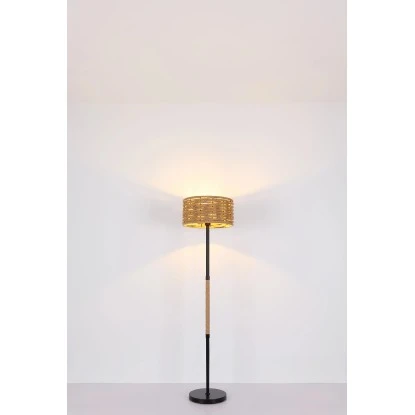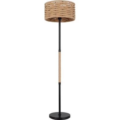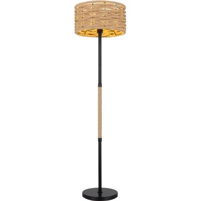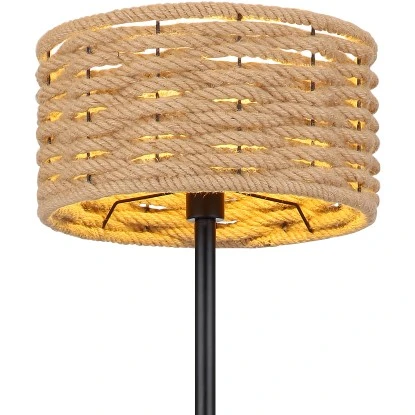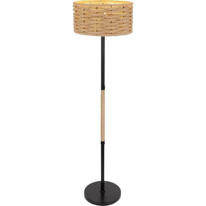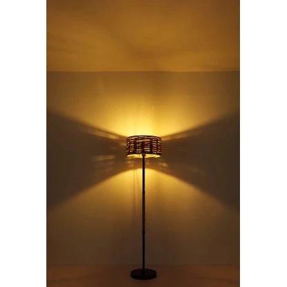 Die knapp 1,5 m große Stehleuchte der Serie Halia beeindruckt durch Ihre Materialkombination aus Metall und Hanfseil. Der Ständer der Leuchte besteht aus schwarz mattem Metall mit einem Mittelteil aus geflochtenen Hanfseil und mündet an einer E27-Fassung welche mit einem Leuchtmittel Ihrer Wahl. bis zu einer maximalen Leistung von 40 Watt bestückt werden kann. Ein Schirm mit einem Durchmesser von 40 cm aus geflochtenen Hanfseil bedeckt die E27-Fassung und wird mittels Fußschalter Ein und Aus geschalten.